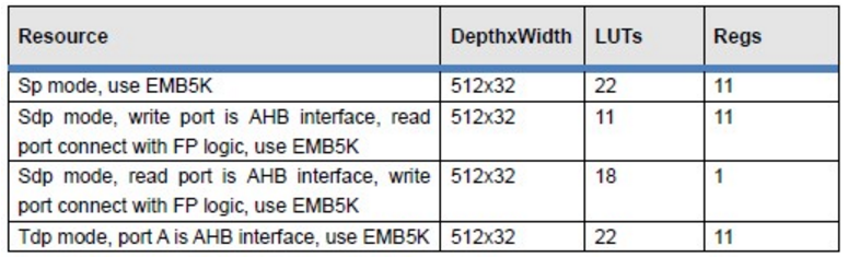 支持三种 EMB 类型:True Dual Port、Simple Dual Port和Single Port