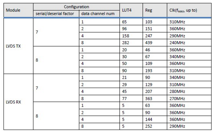 支持LVDS 信号输出(serializer)和接收(deserializer)