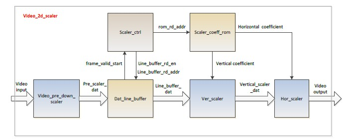 2D 视频缩放 IP核,用于调整视频输出视频帧率与输入帧率大小相同。该协议通常用于消费电子设备,如数字电视、医疗成像、视频监控、视频会议、视频游戏机和 DVD 或蓝光光盘播放机。