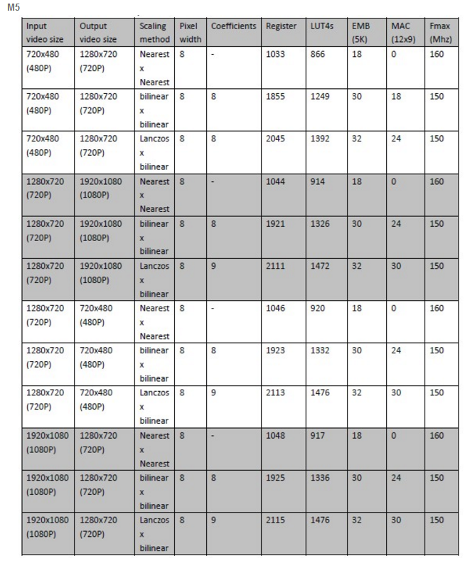 可配置的缩放比例,共享垂直和水平滤波器系数存储器的选择
